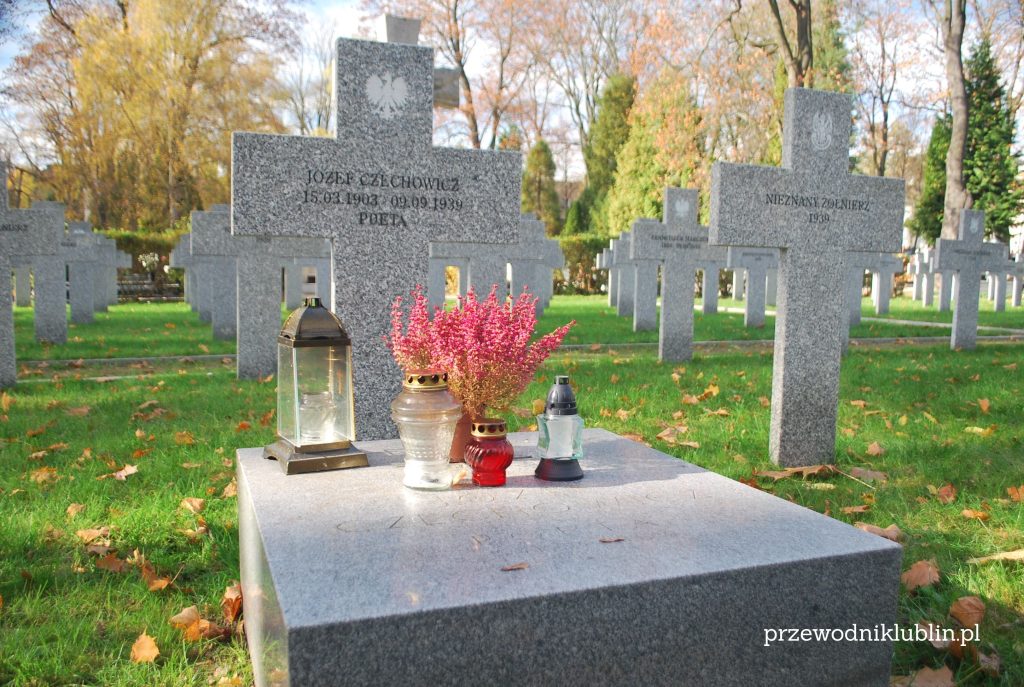 Na zdjęciu krzyż upamiętniający lubelskiego poetę na cmentarzu przy ulicy Lipowej. Józef Czechowicz zginął w swoim rodzinnym Lublinie — mieście, które tak często gościło w jego wierszach. Zginął 9 września 1939 roku od bomby, w samym sercu miasta. Miasta, które kochał i o którym opowiadał w poezji. Poeta został najprawdopodobniej pochowany w zbiorowej mogile, w kwaterze poległych w 1939 roku.